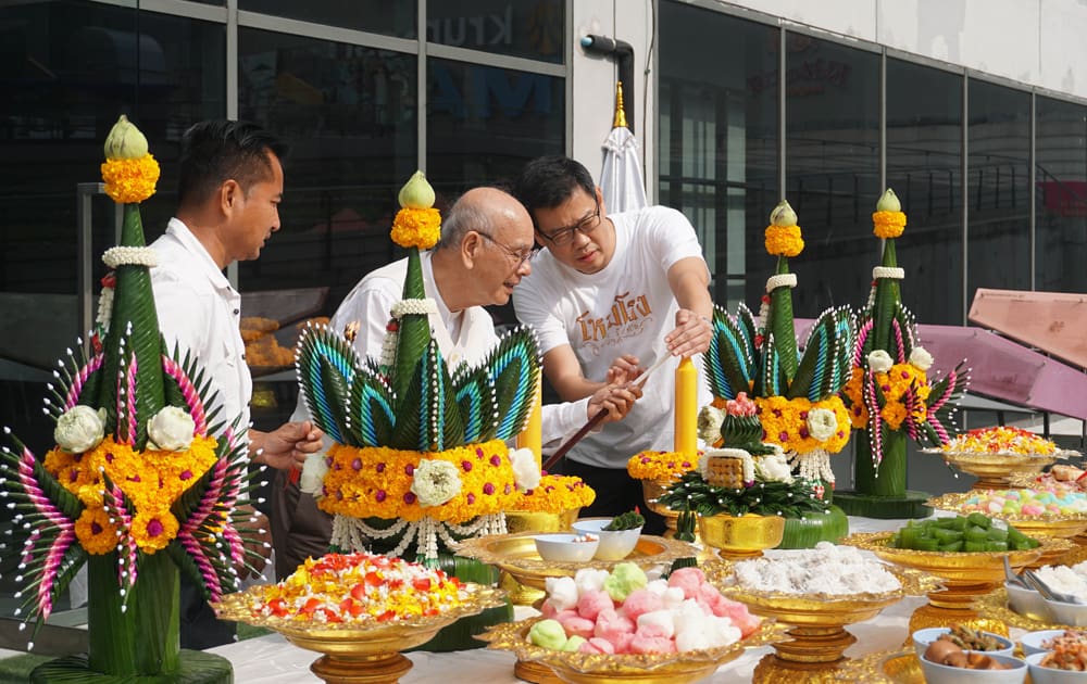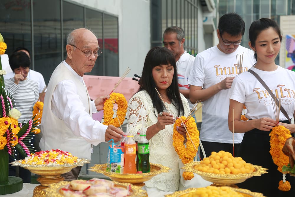 นำทีมนักแสดงมากฝีมือ อาทิ สุประวัติ ปัทมสูต (พ่ออี๊ด), กรกันต์ สุทธิโกเศศ (อาร์ม), สาธิดา พรหมพิริยะ (แนน), อนุสรณ์ มณีเทศ (โย่ง อาร์มแชร์), ทวีศักดิ์ อัครวงษ์ (เบิ่ง), สุดา ชื่นบาน (แม่เม้า), ศรัทธา ศรัทธาทิพย์ (ครูรัก) และดารานักแสดงสมทบอีกมากมาย มาร่วมพิธีบวงสรวงเพื่อความเป็นสิริมงคล ก่อนที่จะเริ่มเปิดการแสดงโชว์ในต้นเดือนพฤษภาคมนี้ โดยบรรยากาศพิธีบวงสรวงเป็นไปอย่างราบรื่น อบอุ่น ณ โรงละครเคแบงก์ สยามพิฆเนศ ชั้น 7 สยามสแควร์ วัน