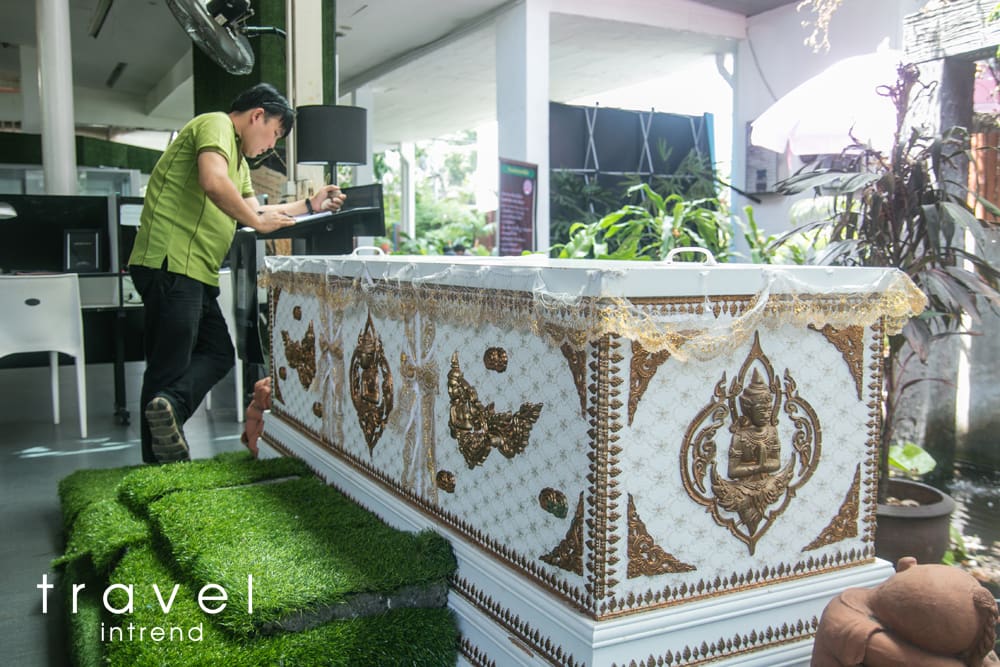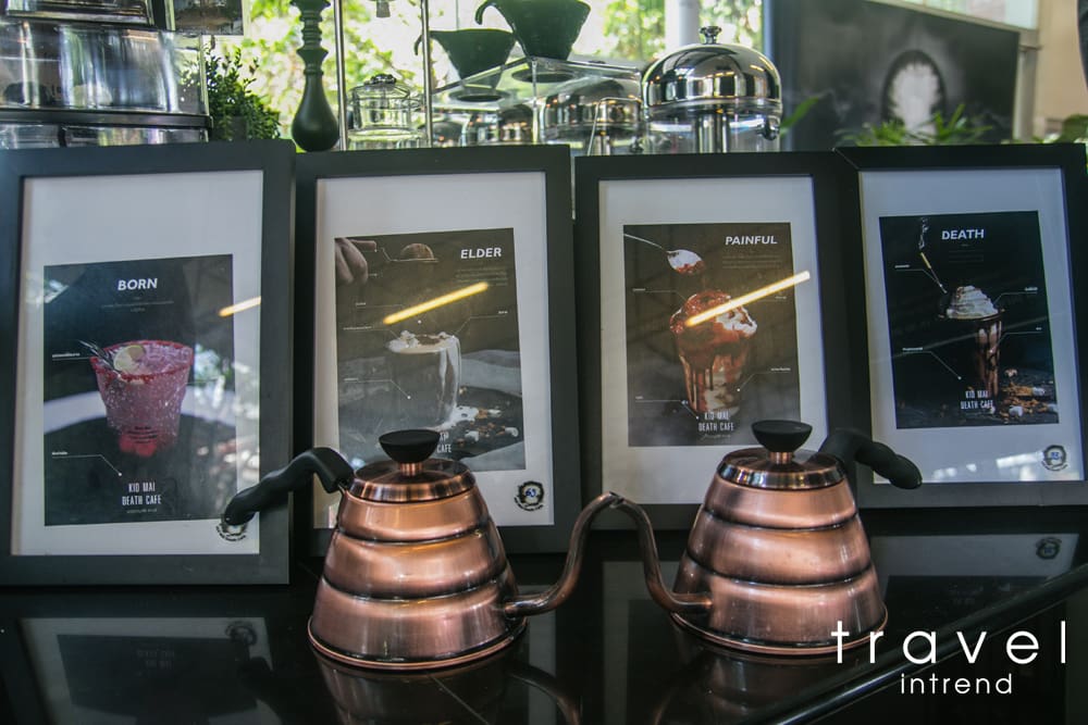ที่ KID MAI DEATH AWARENESS CAFÉ ซึ่งไม่ใช่ร้านกาแฟโดยทั่วไป เพราะเป็นพื้นที่แสดงผลงานทางวิชาการ เพื่อให้คนระลึกถึงความตายและคุณค่าของการมีชีวิตอยู่ มีกิจกรรมที่น่าสนใจ อย่างการตั้งโลงศพไว้ในร้าน โดยลูกค้าสามารถลงไปนอน หรือ “ลองตาย ก่อนตาย” ได้ การนอนในโลงที่ปิดรอบด้าน เมื่อครบ 3 นาที จะได้รับส่วนลดค่าเครื่องดื่ม 5 บาท และทำให้ผู้ที่ทดลองตายได้คิดว่า ความตายเป็นเรื่องใกล้ตัว และการมีชีวิตอยู่นั้นมีคุณค่า จึงควรทำแต่สิ่งดีๆ ก่อนตาย เพราะไม่รู้ว่าความตายนั้น จะมาเยือนเราเมื่อไหร่