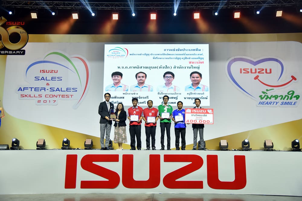 การแข่งขันทักษะด้านการขายและบริการหลังการขายอีซูซุ ประจำปี 2560 รอบชิงชนะเลิศนี้ ผู้เข้าแข่งขันต้องผ่านการทดสอบอย่างเข้มข้นตามมาตรฐานการปฏิบัติงานในแต่ละด้าน โดยมีคณาจารย์จากสถาบันการศึกษาชั้นนำให้เกียรติร่วมเป็นกรรมการตัดสินในครั้งนี้ด้วย โดยผลการแข่งขันมีดังนี้